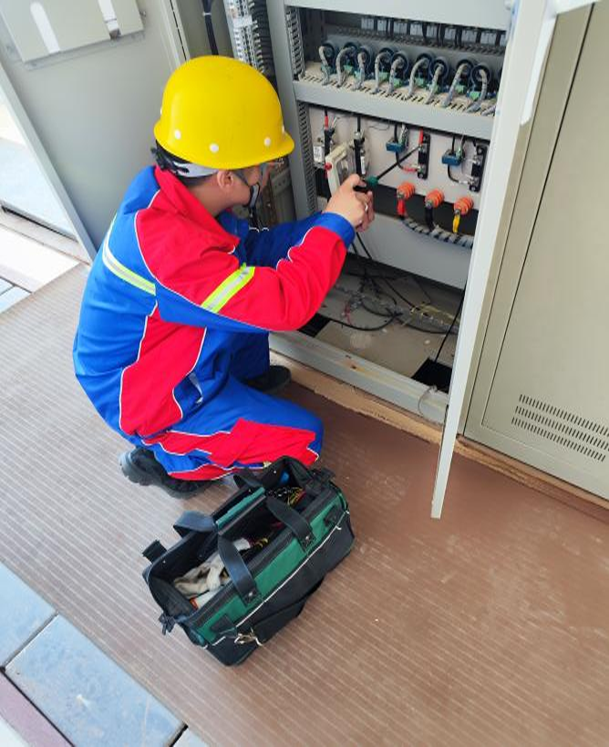 一个工具箱,装满了螺丝刀、万用表、绝缘胶带等各类工具;一双绝缘鞋,踏遍了港区的每一处角落。水电工师傅们日复一日,俯身巡检、侧身聆听,确保每一个线路节点连接牢固,每一处水管接缝滴水不渗;他们用用专业与坚守,守护着港区的每一处水电线路,为射阳港区稳定运营提供坚实的基础。