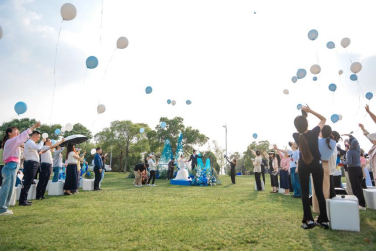 户外婚礼秀的“集体问誓”环节,由全体来宾共同见证新人的誓言。这一创新形式不仅增强了互动性,还让参与者深刻感受到港泊文旅品牌的温度与诚意。最后尾声的气球放飞仪式,更以仪式感诠释着 “爱如潮汐永恒” 的品牌主张。