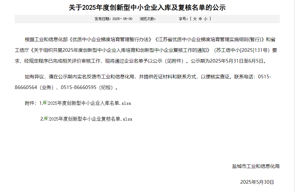 江苏省创新型中小企业入库名单
