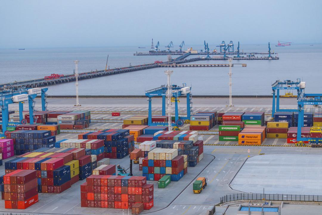 在大丰港集装箱码头自动化控制中心,工作人员远程操控着4台自动化轨道吊,即可精准完成抓箱、落箱作业。400 亩的堆场内,除集卡司机外,不见一人值守。