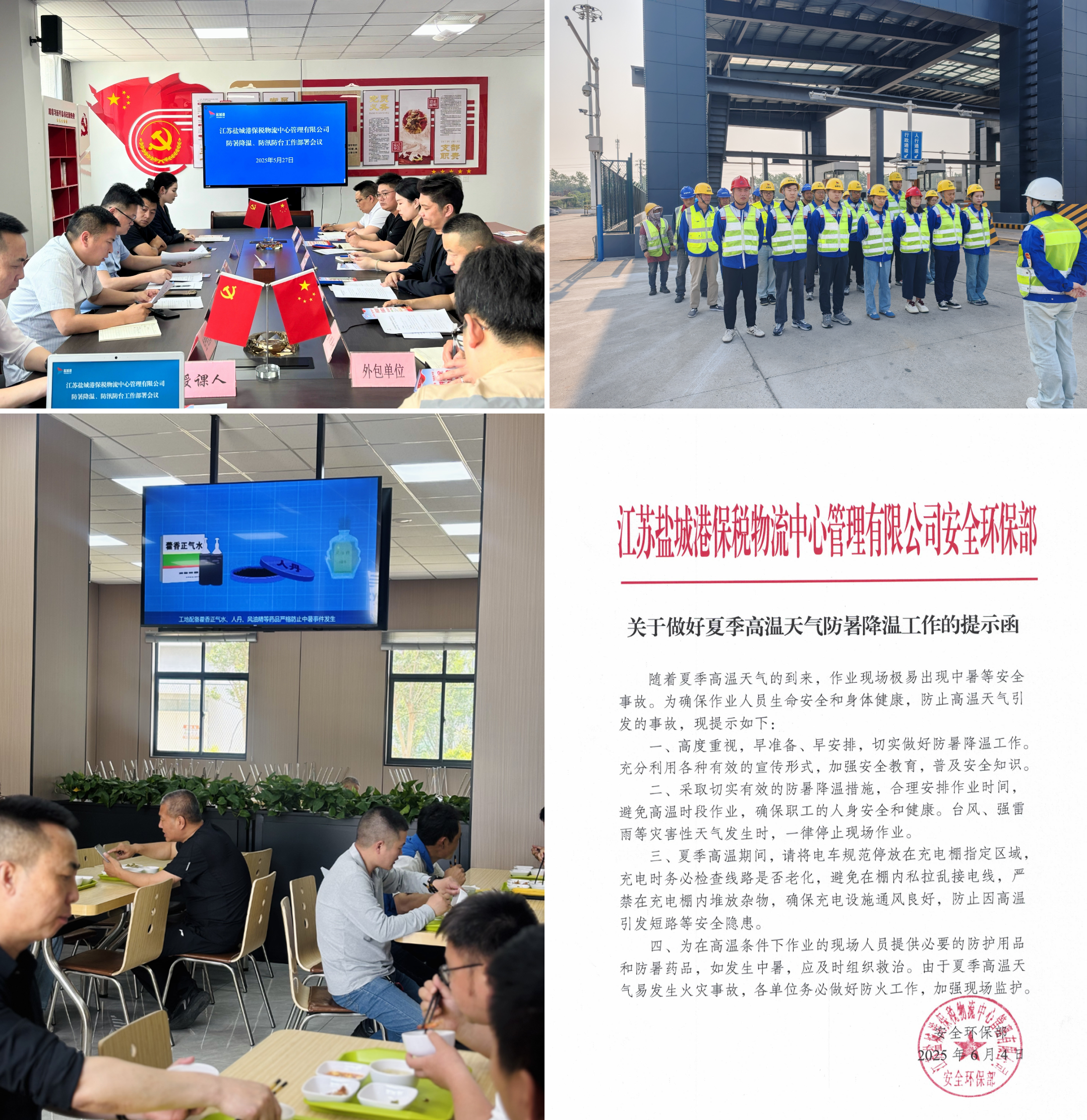 随着气温逐渐攀升,一线作业面临着更加严峻的安全风险。为防止因高温天气引发人员中暑和其他安全事故的发生,近日,盐城港保税物流中心多措并举推动安全防暑降温工作,切实筑牢高温安全生产屏障。