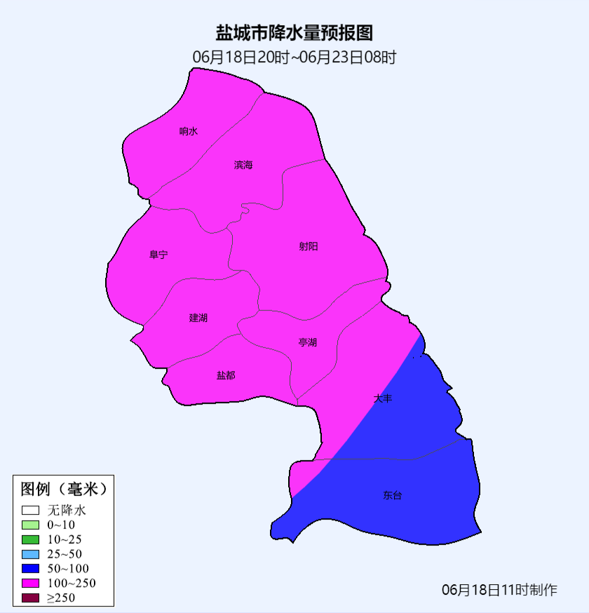 6月18日20时-23日08时全市降雨量预报图