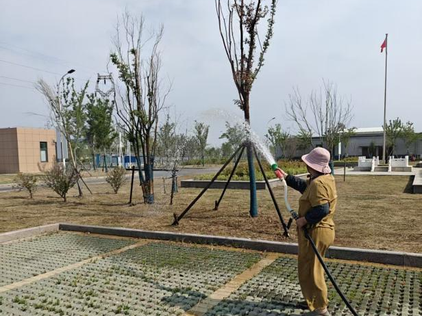 给绿植浇水并非简单的“大水漫灌”,而是要为它们量身定制专属的“饮水计划”。绿化养护团队严格遵循“深浇慢灌”的原则,巧妙避开上午10点至下午4点的高温时段,选择在清晨或傍晚为绿植补充水分。此外,他们还为大树配备缓释浇水袋,使水分能够缓慢释放。