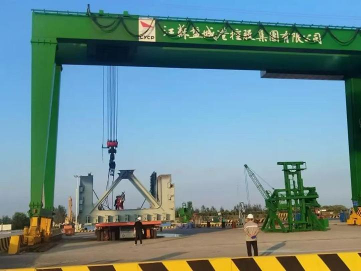 阜宁港区深耕大件匠心铸就标杆,凭借精湛的技术和优质的服务,成功完成滨富重工超80吨钢板装卸任务,与神山重工达成5万吨LNG码头管桩订单合作,首批货物已搭载巨轮驶向德国库克斯港,在国际舞台上展现“陆港力量”。