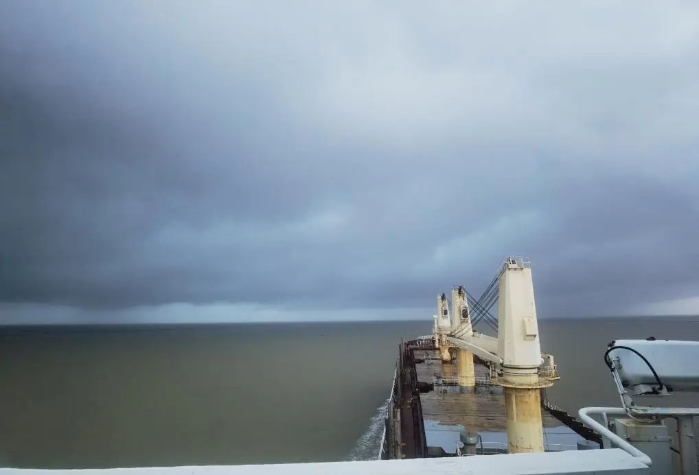 接到任务后,面对强雷暴预警与复杂潮汐,引航员在天气恶化前半小时将船舶提前驶离泊位,安全驶入灌河主航道。初期风力不足四级、水流平缓,航行条件理想,为后续险情处置赢得关键缓冲空间。
