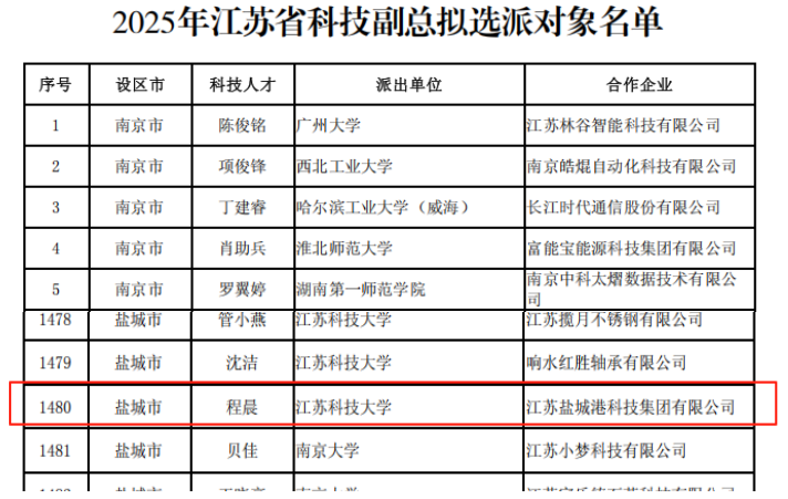 近日,江苏省科学技术厅发布2025年江苏省科技副总拟选派对象公示,江苏盐城港科技集团联合江苏科技大学申报的科技人才——科技集团副总经理程晨成功上榜,其负责的智能无人测绘装备也成功获取高新技术产品证书,这是科技集团在产学研深度融合、高层次人才引育及科技创新能力提升方面迈出的关键一步,也为集团港航科技事业高质量发展注入了强劲动能。