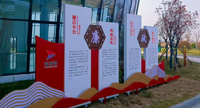 通过召开党风廉政专题会、班子交心会、重大节日思廉会、法务知识宣讲等,传达学习集团关于《廉洁风险防控管理工作制度》等要求,推动党风廉政建设落细落实;利用办公楼内环形走廊的空白墙面,楼宇四周的闲置空地因地制宜、系统规划,将廉洁文化与港口德信体育深度融合,精心打造“廉政文化走廊”与“廉洁文化墙”,把清风传承润“海港”的思想理念融入港区生产经营、党建管理、项目建设、安全生产等工作全过程,根植“港口有魂、心中有责、眼中有光”的担当底色。