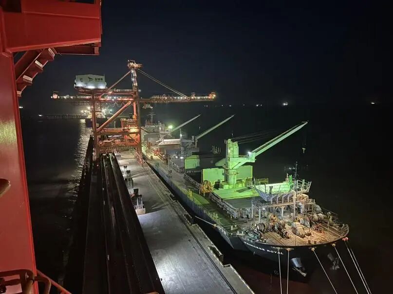 面对木片“质量轻、易飘散、易粘黏”的物理特性与皮带机系统首次适配的挑战,分公司超前谋划,组建专项技术攻关团队。通过多轮工艺论证和设备调试,精准优化皮带机张紧度、输送倾角等关键参数,采取“三机协同、分区作业”的科学生产模式,实现卸船机与皮带机系统的无缝衔接。在107小时的连续作业中,系统运行稳定高效,未发生任何堵料、撒漏现象,圆满完成4万吨木片接卸任务,翻开轻泡散货皮带机作业新的一页。