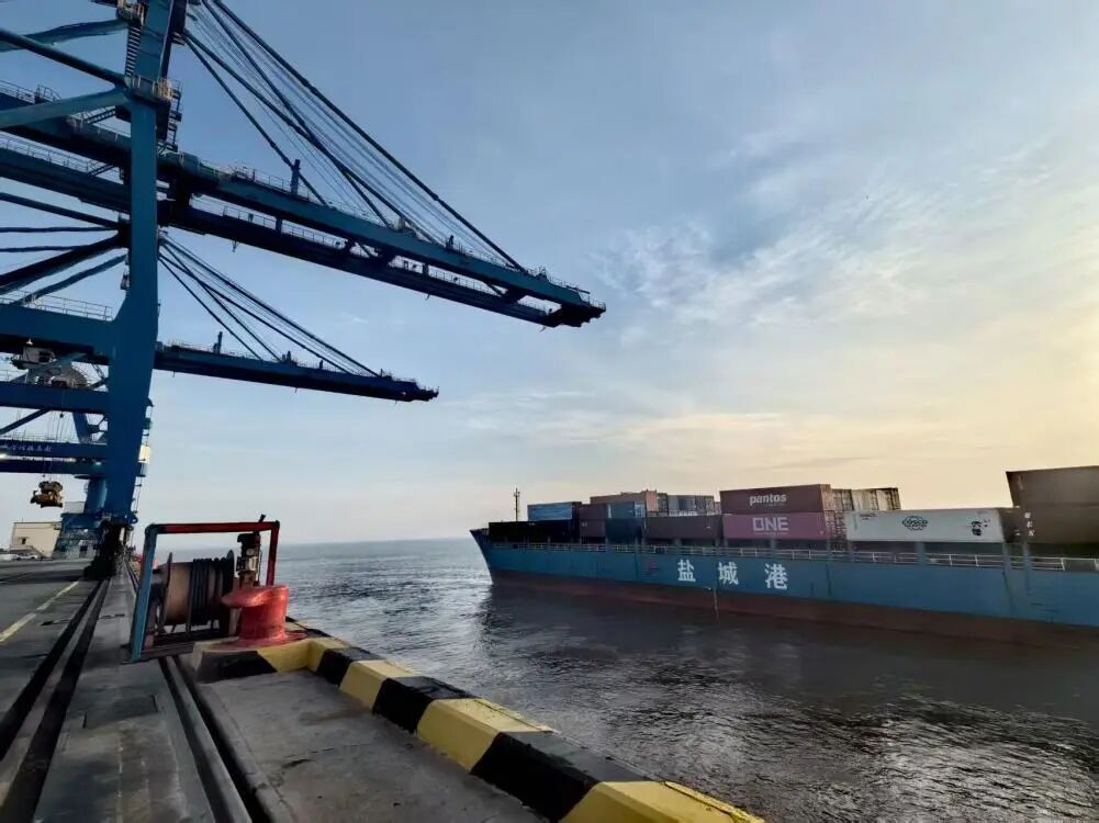 岸桥的钢索垂落如银线