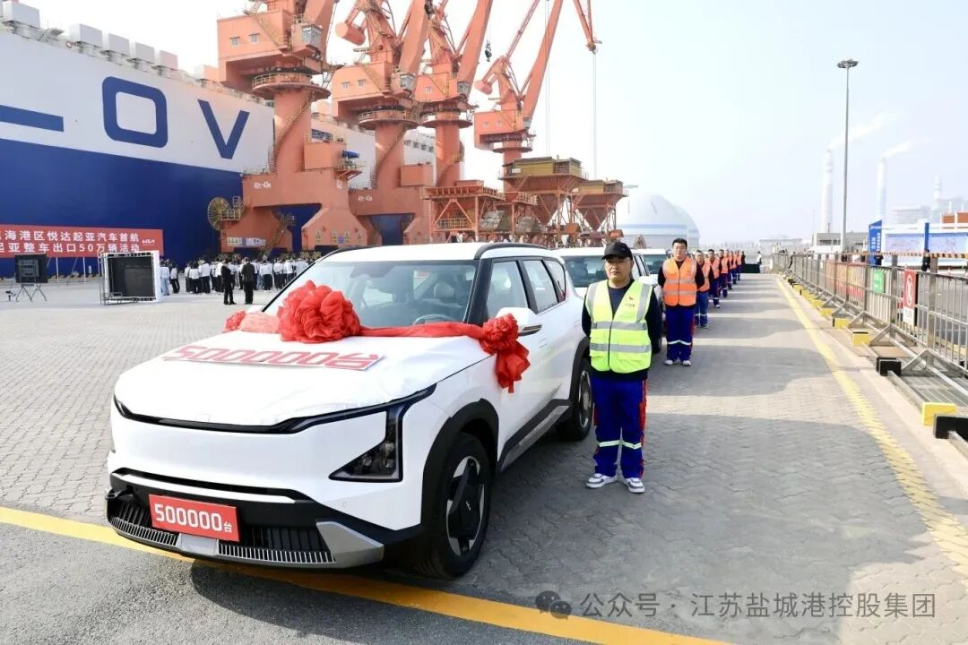 船笛长鸣,随着2000辆汽车缓缓驶入“格罗阳光”号船舱,标志着悦达起亚整车出口第50万辆装船起航仪式圆满成功,这也是悦达企业在盐城港滨海港区首次开展汽车滚装出口业务。为全力保障此次活动,盐城港滨海港区从人力组织、场地设置、通关协调、后勤保障等多维度发力,构建起一套完整的后勤服务保障链接。