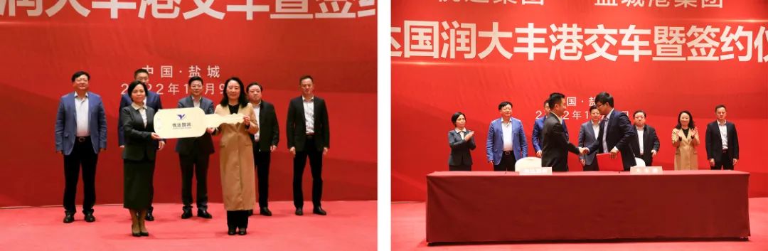 10月9日,悦达国润大丰港交车暨签约仪式成功举行。集团党委书记、董事长周正雄,悦达集团党委书记、董事长张乃文出席活动并分别致辞。悦达集团党委委员、常务副总经理徐兆军,悦达集团党委委员、副总经理解子胜,德信体育 副总经理袁欣,总经理助理孙永峰等参加。