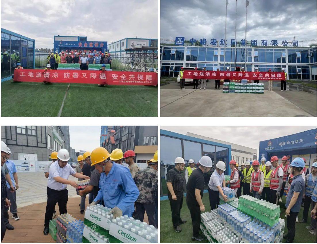 为在建项目一线作业人员发放饮料、矿泉水等防暑降温物品,并叮嘱大家多补充水,做好防晒措施、错峰上班、常备防暑降温药品等。普及高温中暑症状、处理方法及预防措施。收到防暑降温物资的一线作业人员纷纷表示今后将以更加饱满的热情投入到施工生产中去,坚守岗位、克服高温,全力以赴推进项目建设。