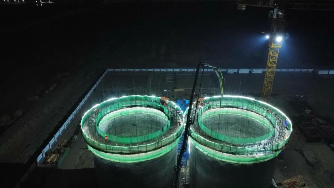 近日,滨海港区仓储物流项目首组浅圆仓仓壁顺利封顶。