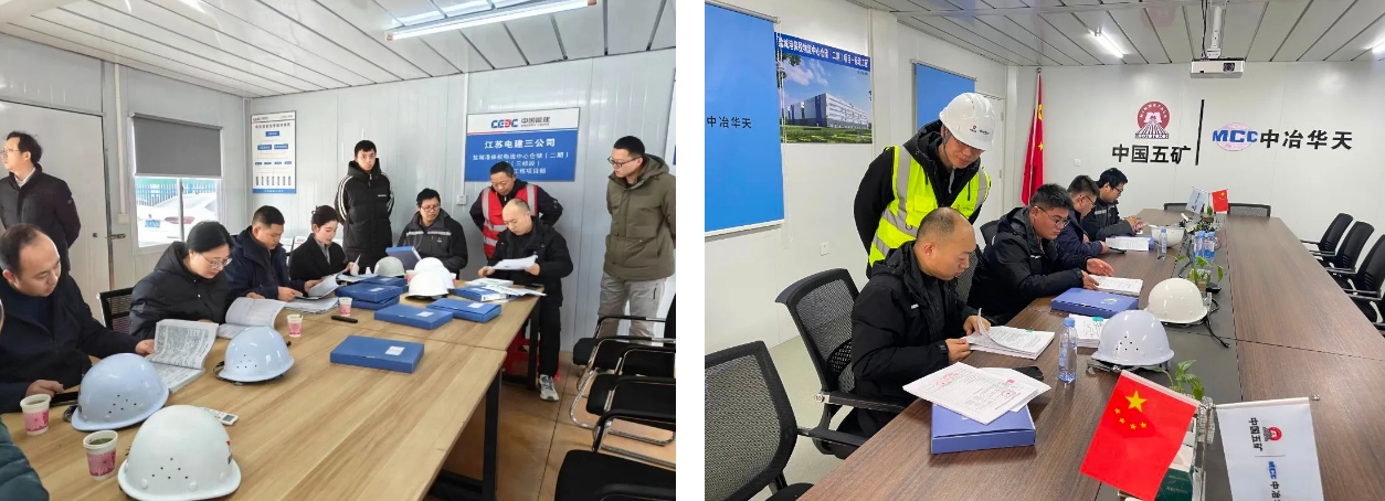 在联合检查过程中,检查组坚持以问题为导向,采用实地查看、调阅资料及听取汇报相结合的方式,重点对仓储二期项目各标段的安全台账以及施工现场进行了检查。