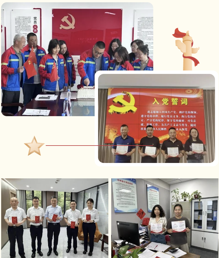 时代见证奋进脚步,征程谱写崭新篇章。在中国共产党成立 104周年之际,德信体育 各基层党组织深入学习贯彻习近平新时代中国特色社会主义思想,以党建领航为统领,精心组织开展了“重温誓词守初心”“政治生日强党性”“警示教育筑防线”“红联共建聚合力”“志愿服务暖民心”等系列主题活动,赓续红色血脉,凝聚奋进力量,为集团高质量发展注入强劲红色动能。