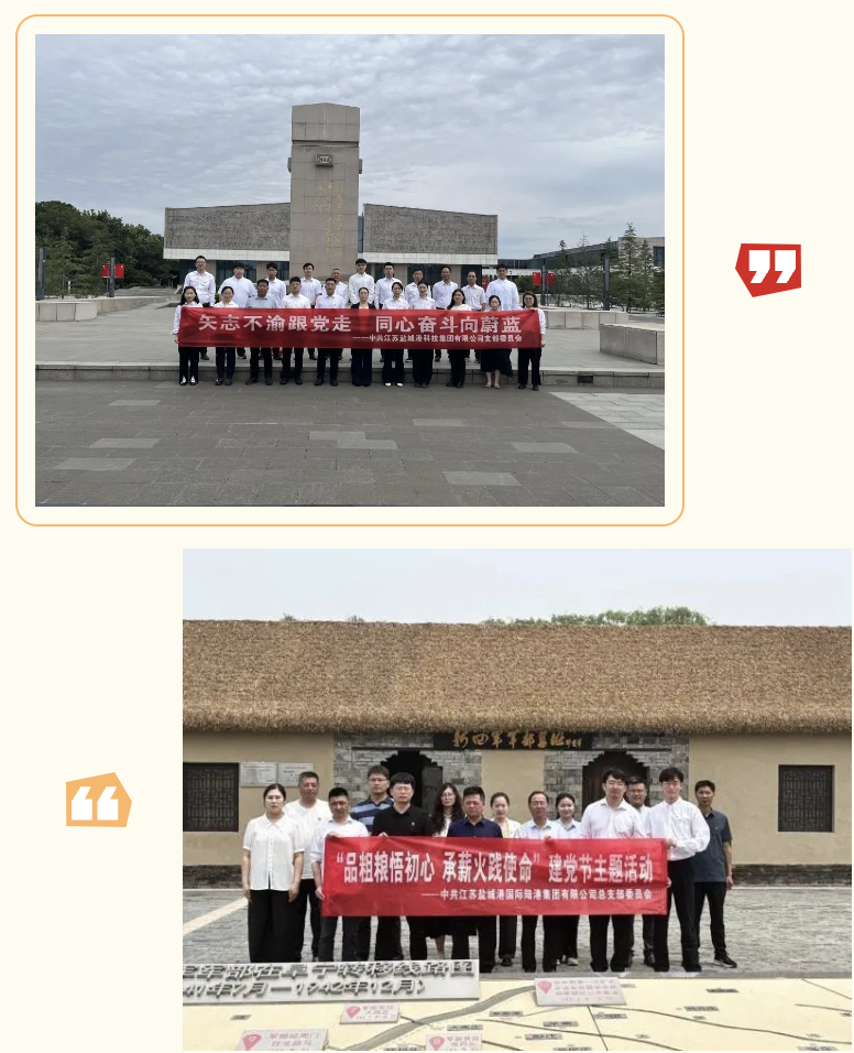 集团充分利用红色教育资源,组织党员开展红色实境教育活动。集团机关党委、科技集团、大丰港开发集团、陆港集团等单位前往新四军纪念馆参观作风建设展,深刻感受新四军的铁军精神和优良作风。航运集团联合保税物流等单位赴三仓新四军一师廉政教育馆,开展“追溯红色印记,筑牢清廉之基”主题教育活动。陆港集团组织党员干部参观停翅港新四军军部旧址,深入了解老一辈革命家指挥抗战的英勇事迹,并通过品尝“忆苦思甜饭”,让党员深刻体会革命先辈们在艰苦环境中不屈不挠、无私奉献的精神。
