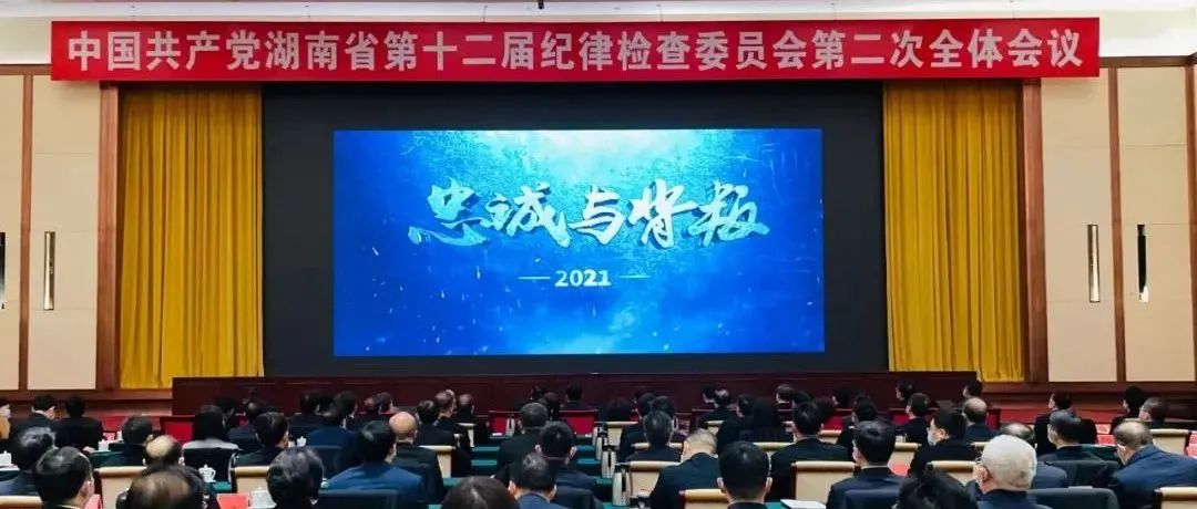 湖南省十二届纪委二次全会现场组织观看警示教育片《忠诚与背叛2021》《永不蒙尘2》。(图片来源:三湘风纪微信公众号)