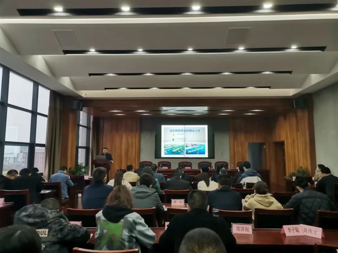 “业务大讲堂”由港区相关负责同志进行主讲,他以《浅谈高桩码头建设过程》为题,结合响水港区小蟒牛作业区码头二期工程(4#、5#泊位)项目建设的实际情况,围绕岸坡挖泥施工、灌注桩施工、水上沉桩施工、现浇桩帽施工、预制构件施工及安装等方面内容,通过文字、图片、视频相结合的方式,深入浅出地为机关干部职工作了系统地讲解,内容丰富,干货满满。