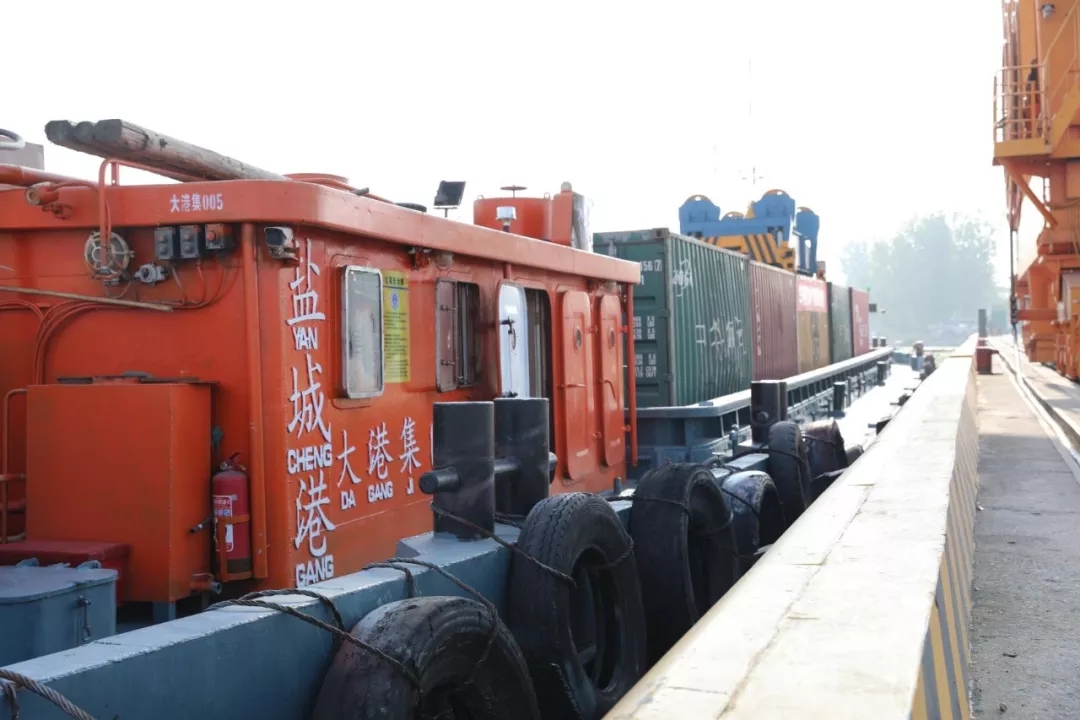近日,周口港至盐城港阜宁港区内河集装箱航线首航仪式在阜宁港成功举行。随着满载30个集装箱玉米的货船稳稳的靠泊阜宁港码头,标志着周口中心港至盐城港阜宁港区集装箱班轮圆满完成首航,盐城港阜宁港区逐步融入内河航运网络。该航班的开通,将周口至阜宁货物运输时间缩短至7天。