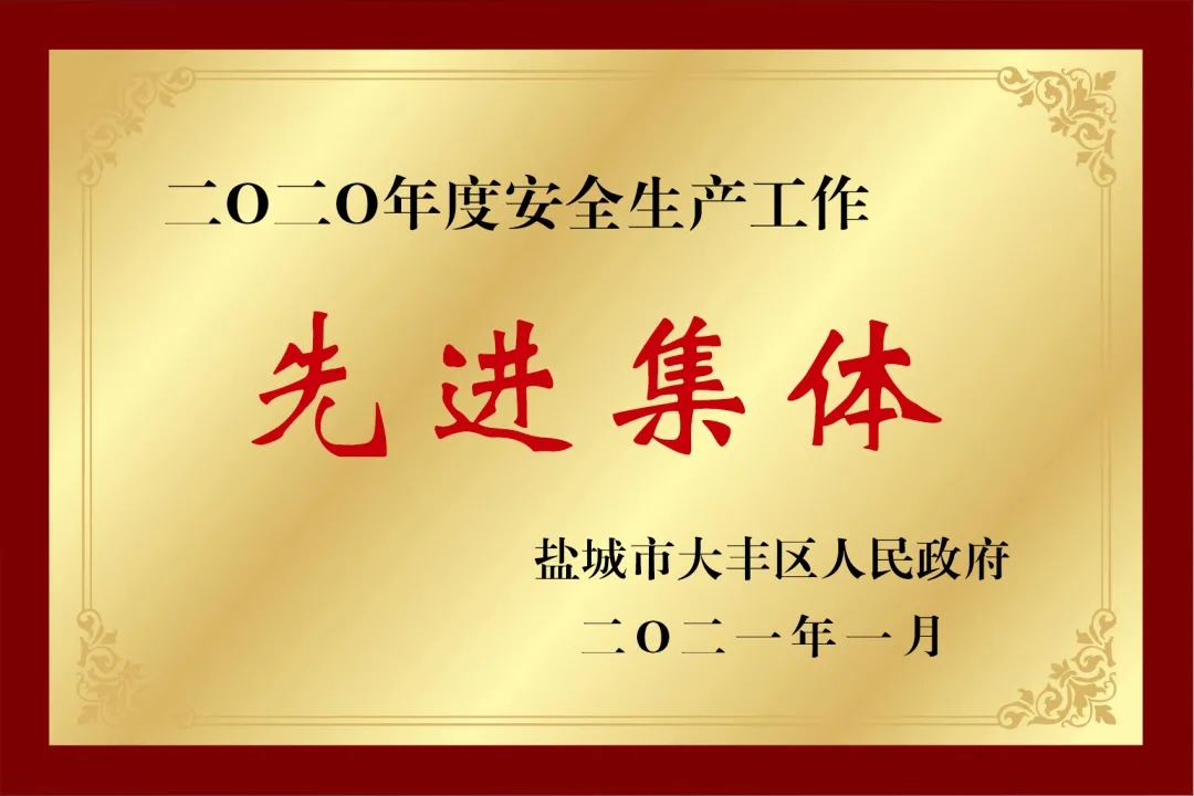 近日,大丰港区港口公司荣获盐城市大丰区人民政府2020年度全区安全生产工作先进集体称号。