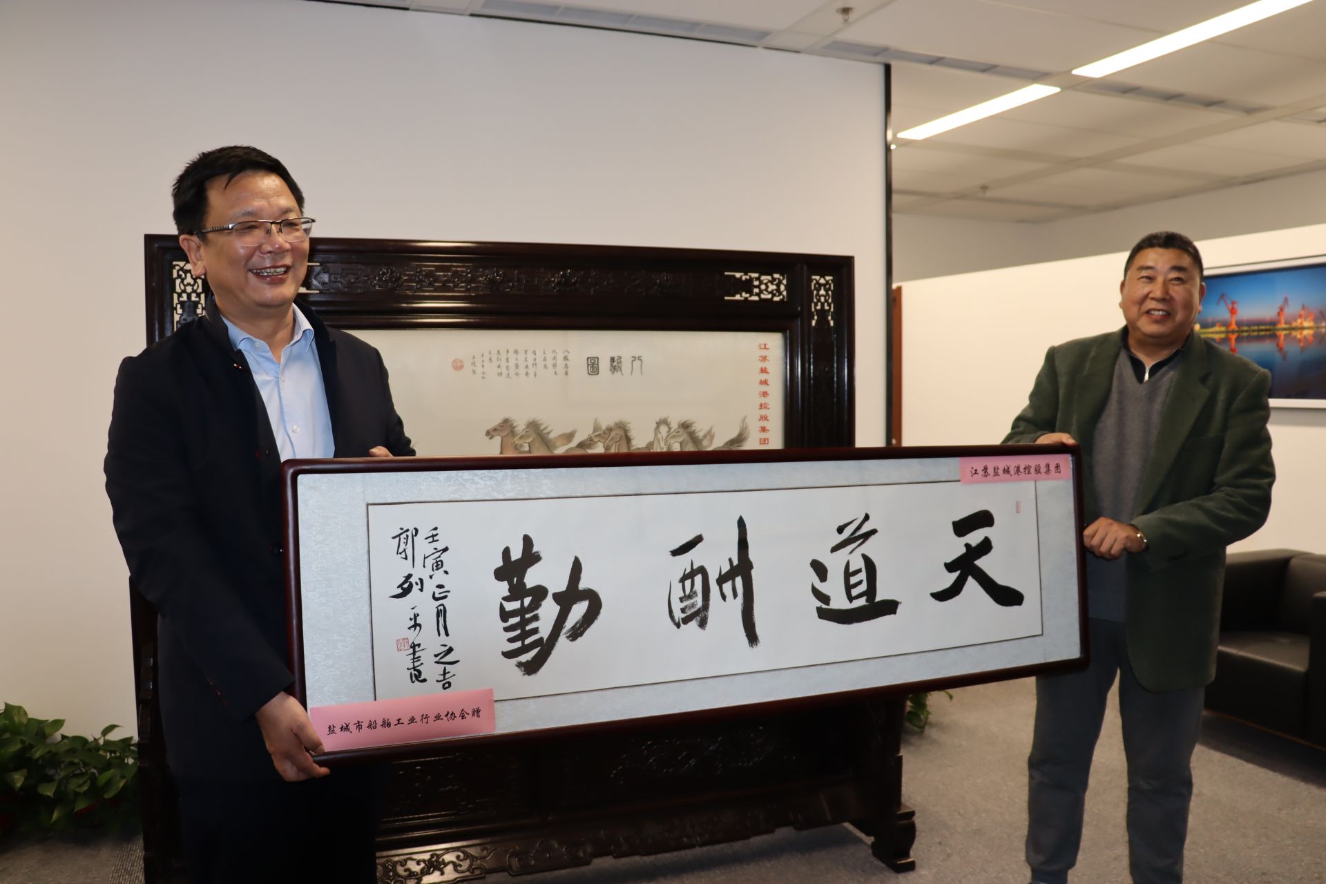 【导读】 3月10日下午,盐城市交通运输局、市交通运输综合行政执法支队、市综合交通学会和市船舶工业行业协会来到盐城港控股集团进行授匾调研洽谈,在集疏运体系建设与发展、一线员工安全技能培训及船舶设计与制造等事宜双方达成共识。