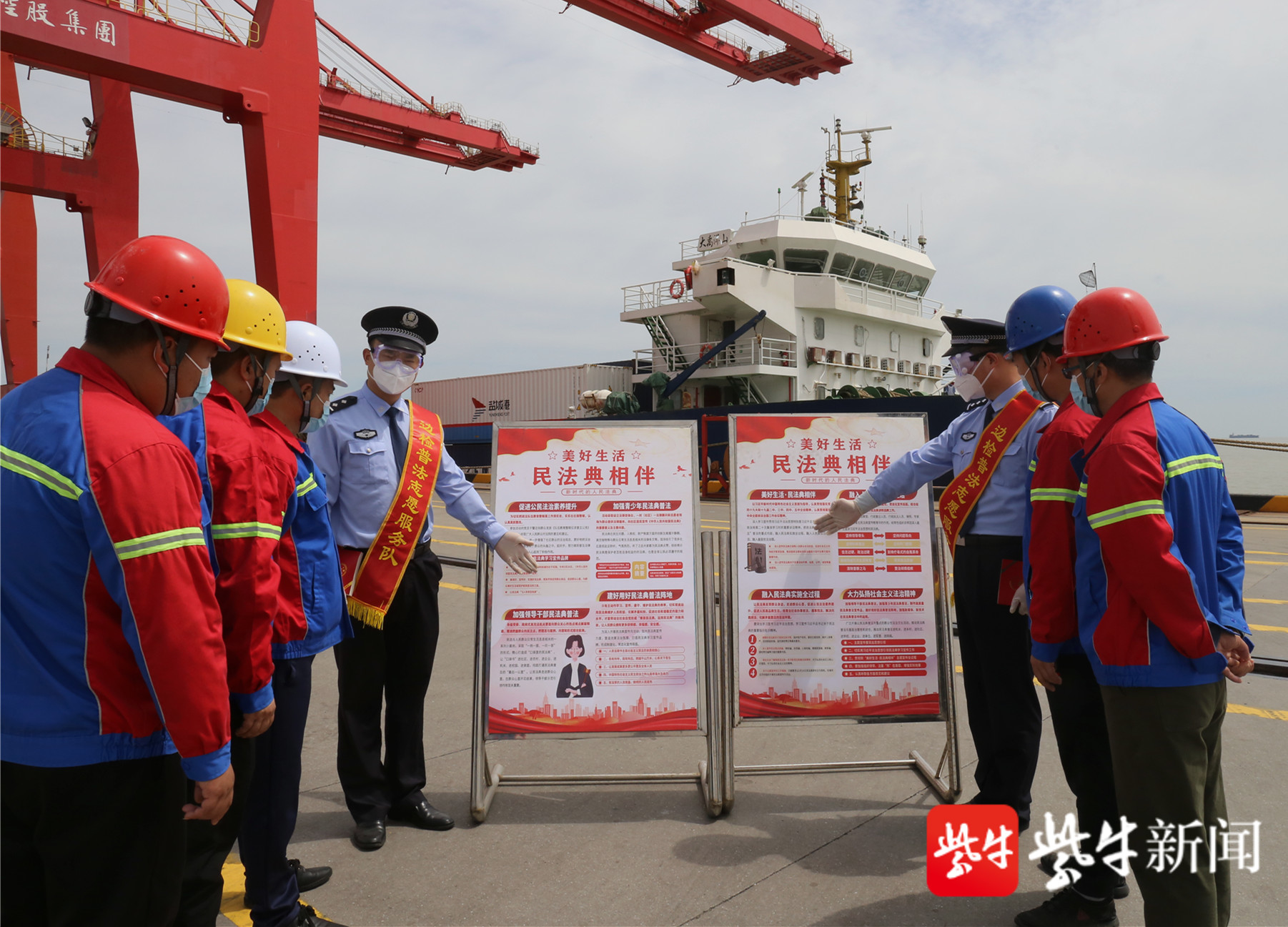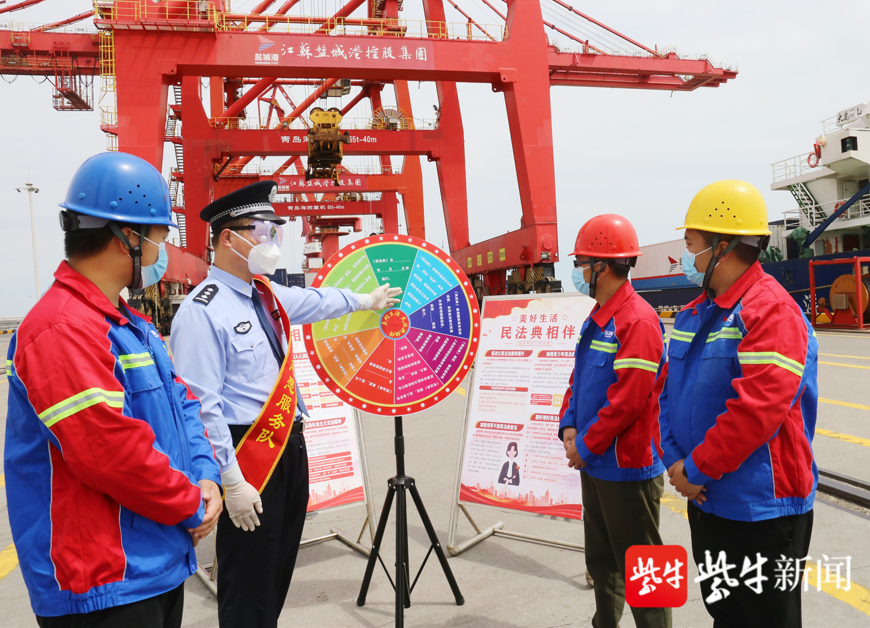 为切实提高码头一线工人的维权守法意识和知法用法能力,5月27日上午,江苏盐城出入境边防检查站组织普法小分队,顶着炎炎热日来到盐城港大丰港区集装箱码头,开展“美好生活·民法典相伴”主题宣传活动,提升码头一线工人守法意识和学法热情。