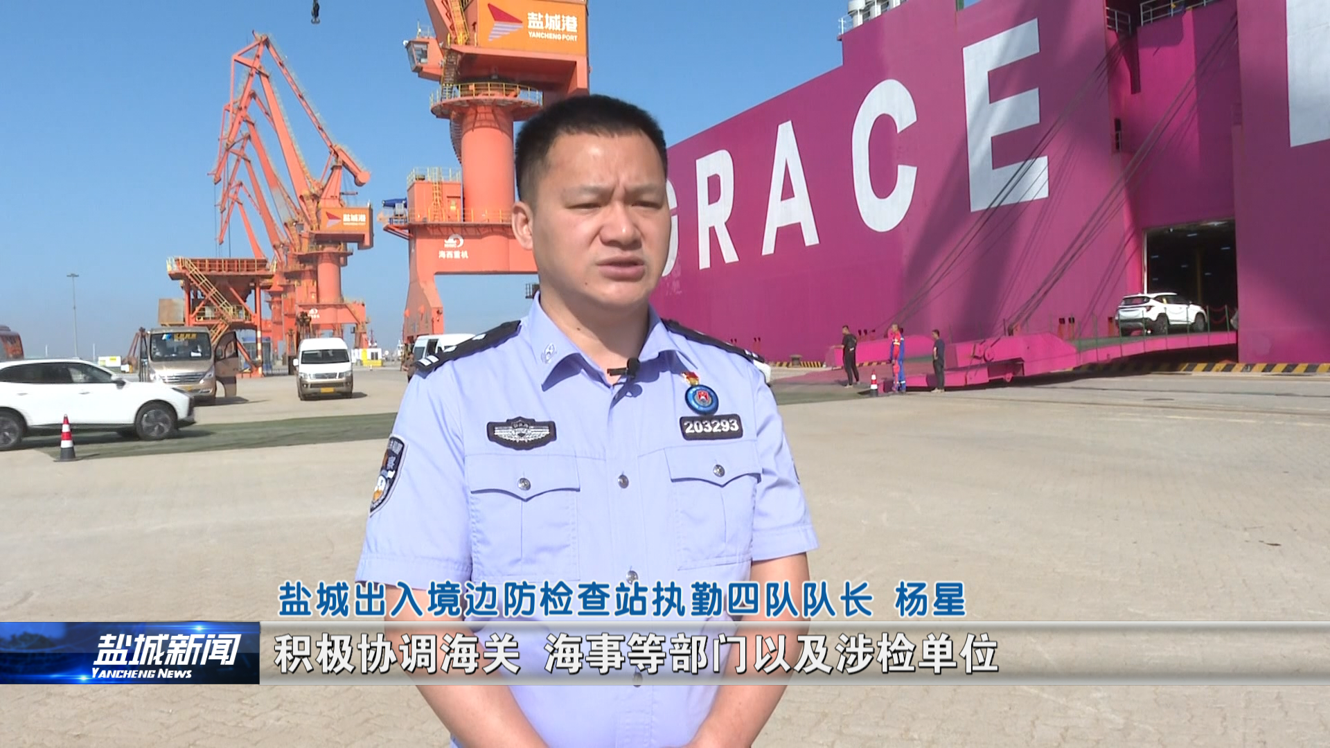 5月23日上午,满载1163辆汽车的巴拿马籍汽车滚装船“优雅”轮从盐城港滨海港区离岸前往中东阿联酋迪拜。这是滨海港区单次汽车出口量最多的一个批次,出口的汽车包括起亚赛图斯、起亚K3、丰田卡罗拉和上汽名爵等多个知名品牌。