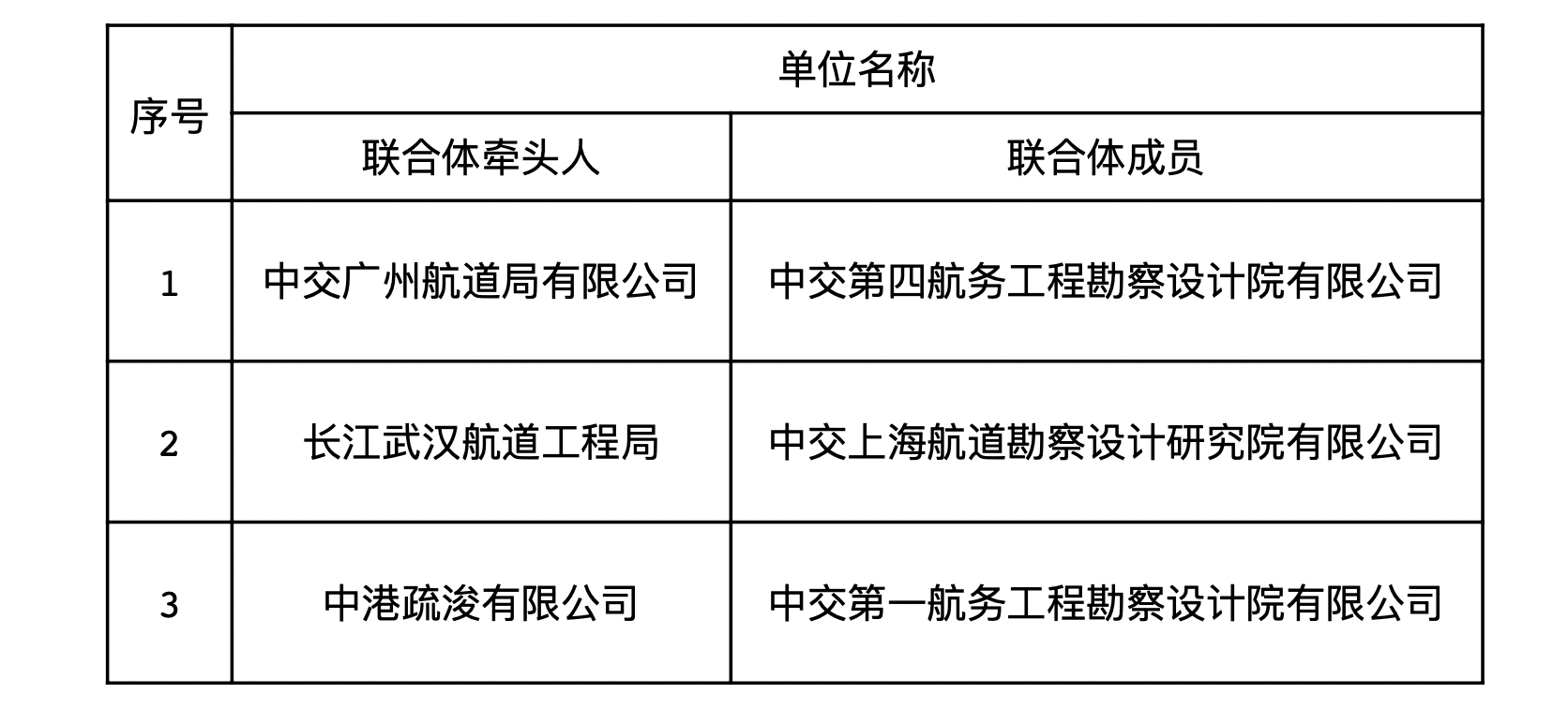 根据《盐城港滨海港区主港池清理改造工程设计施工总承包BHZGCQG-EPC标段招标文件》评标办法,经评标委员会评审,以下单位入围定标候选人: