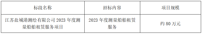 一、 江苏盐城港测绘有限公司 就江苏盐城港测绘有限公司2023年度测量船舶租赁服务项目进行公开招标,诚邀合格的投标人前来报名参加。
