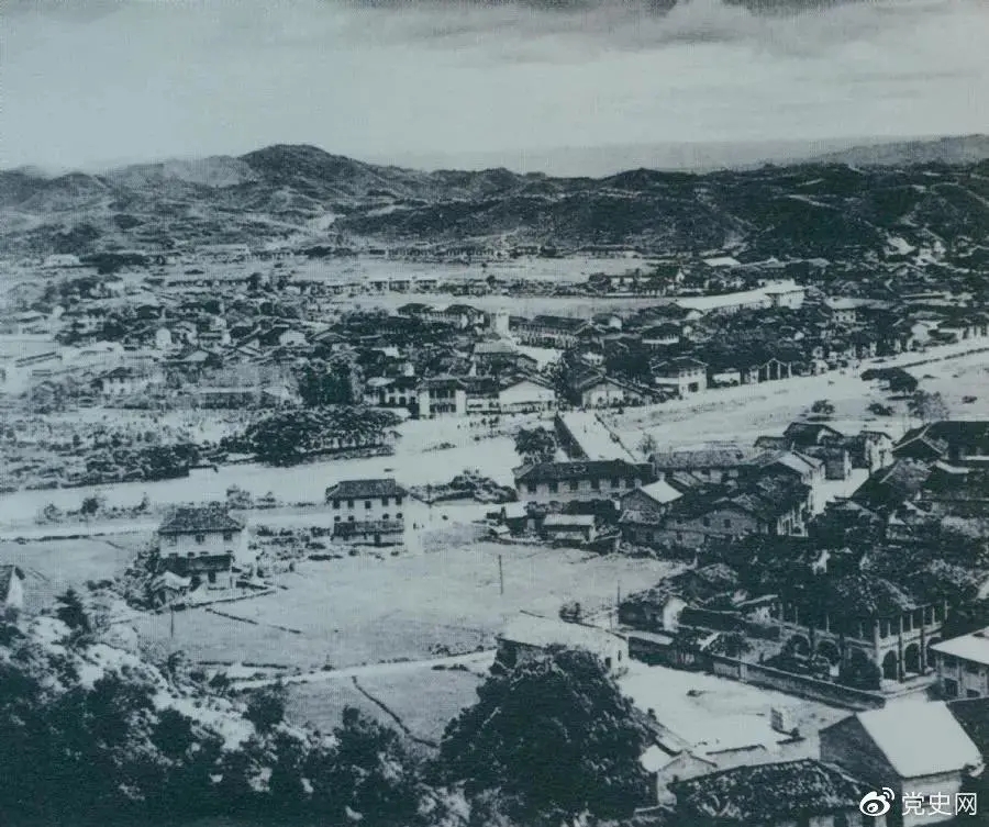 1928年4月,朱德率领南昌起义余部到达井冈山,与毛泽东领导的部队胜利会师。图为会师地点砻市全景。