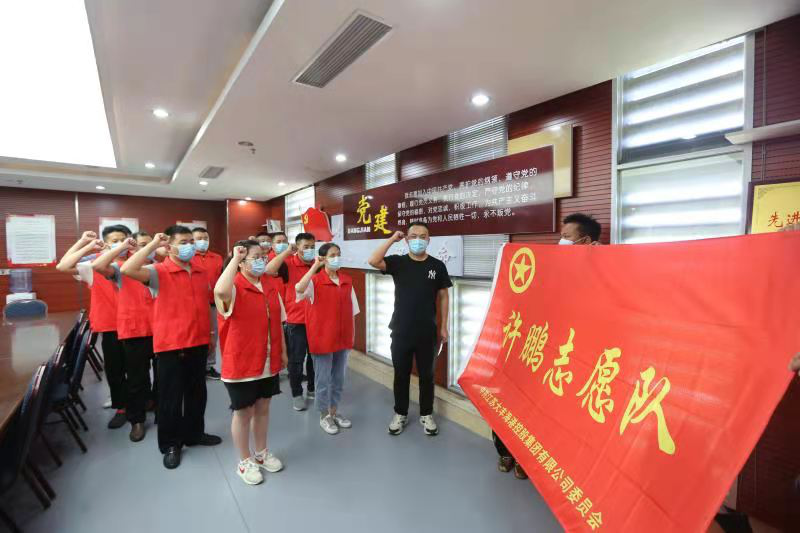大丰港区“许鹏”志愿队快速投入防控工作中。既当“指挥员”又做“战斗员”,在机关区域内进行消杀、人员测温、张贴防疫标语;在华丰农场、一线码头、核酸监测点等各个重点防疫区域查疫情、测体温、宣传防护知识、搬运物资……他们以实际行动践行着“许鹏”精神,忙碌在各个疫情防控战场上,他们已成为抗疫路上一道靓丽的风景线。