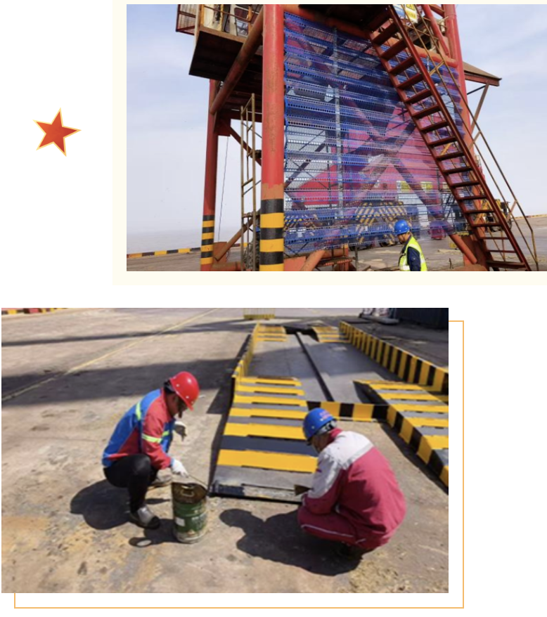 聚焦提升科技创新水平和提质增效能力,全球首创智能“筑港机”助力通用码头3号泊位项目顺利通过“平安百年品质工程”省级验收,扎实开展“五小创新”活动,党员同志带头动手改造,对门机漏斗出料口耐磨衬板进行加装,在漏斗侧面加装金属防尘网,并自制防堵料锥和洗车平台,不断优化生产环节,提升作业效率,卸船机单机作业效率提升25.8%,门机台时效率同比增长14.5%,为高质量发展注入活力动能。