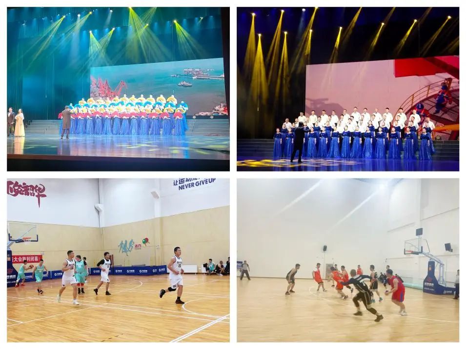 合唱台上 港区青年们歌声嘹亮 动作整齐