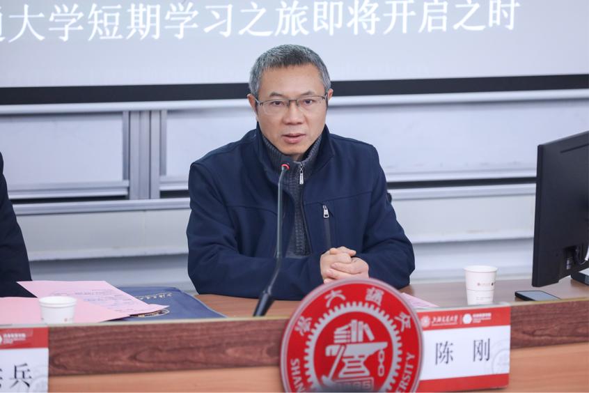 在开班仪式上,陈刚、梁洪兵亲手为学员代表佩戴上海交通大学校徽,这标志着学员们正式加入上海交通大学大家庭,开启全新的学习旅程。