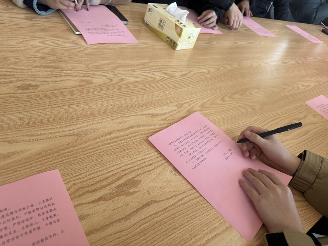 青年们现场签订廉洁从业书并为每位青年送上廉洁日历及戒尺,进一步强化青年们廉洁自律思想意识,进一步提醒青年们把廉洁承诺转化为工作动力和成效,做遵纪守法、严格自律的表率,营造风清气正的干事氛围。