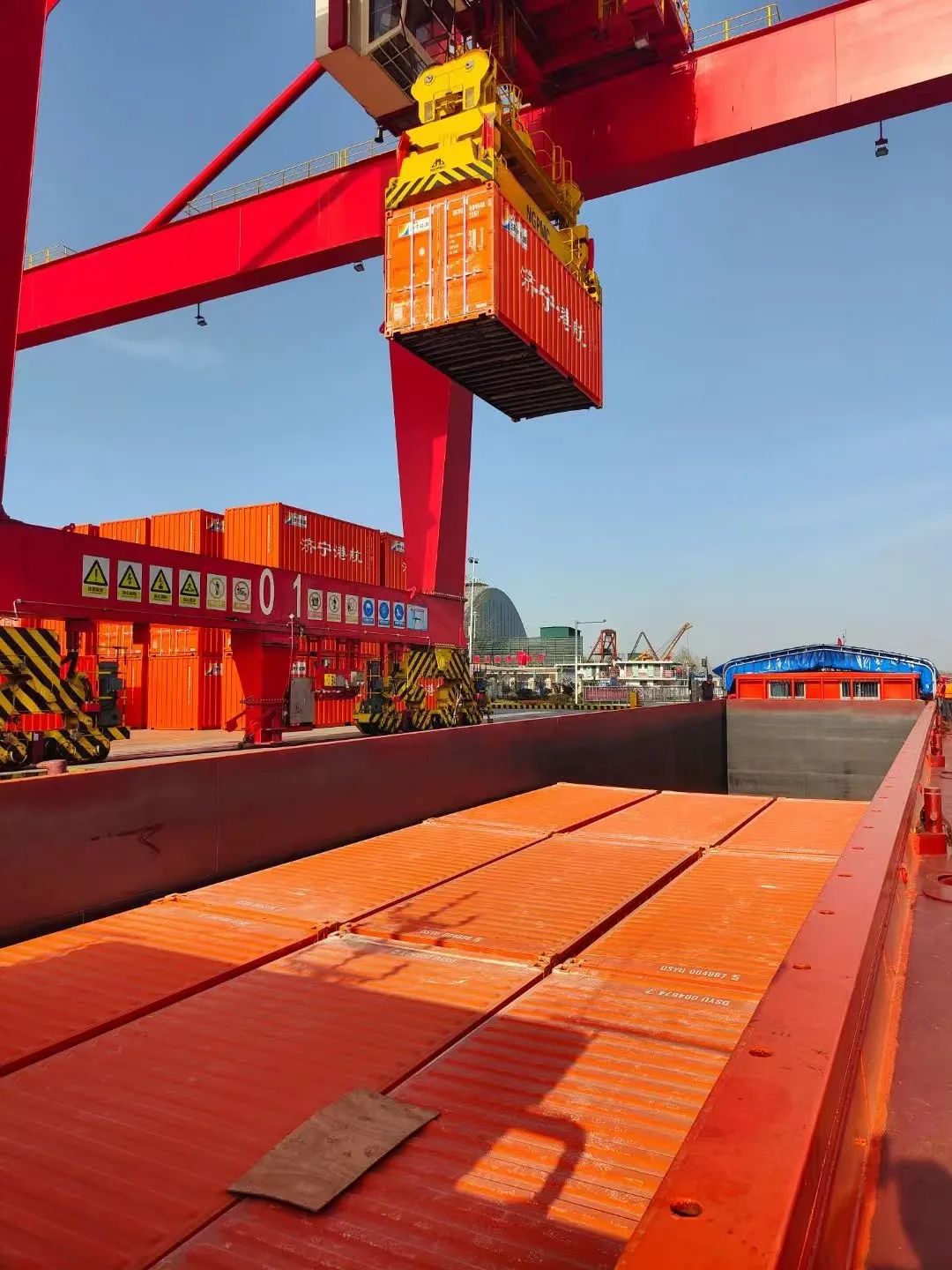 4月9日满载集装箱运输船“港航润杨5010”号已经从山东济宁港抵达亭湖港区,首批业务完成集装箱68TEU,预计全年可完成“散改集”吞吐量1000TEU。