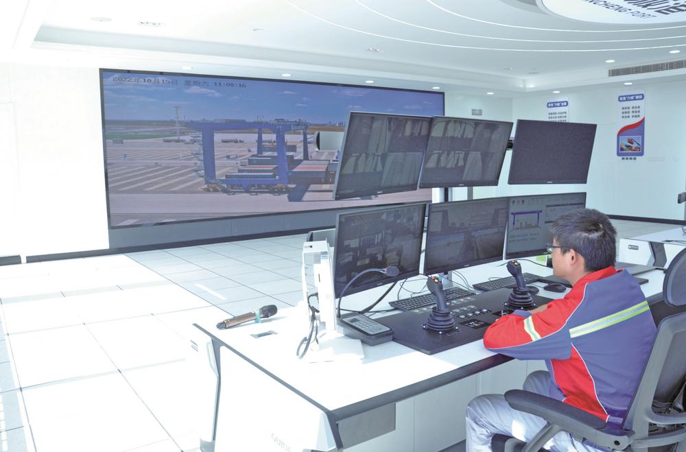“堆场改造完成后,借助‘5G+北斗+高精度地图’定位技术相融合,创造性地实现了集装箱作业全过程应用,助力设备实现厘米级精度操作,构建了高效、安全、流畅、稳定的运行环境,让远程调度作业更精准,抓箱效率提升了35%以上,堆场设备整体作业效率可提升30%。”集装箱自动化团队负责人陈越说,同时通过对堆场照明系统、配电房、海关闸口等设施进行智能化管理,在使用LED节能灯具的基础上,仍可实现综合节电率15%,集装箱卡车平均进出闸口用时仅需20秒,通行效率提高了50%以上。