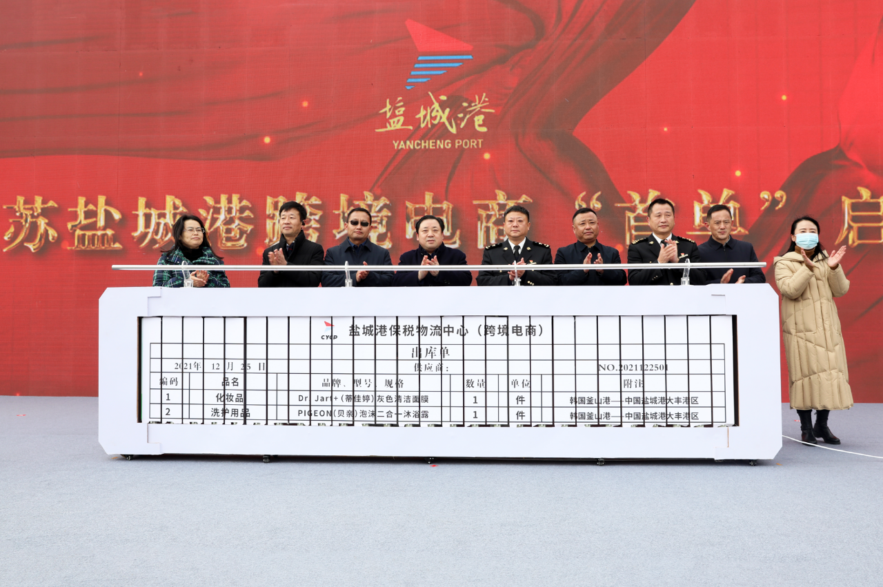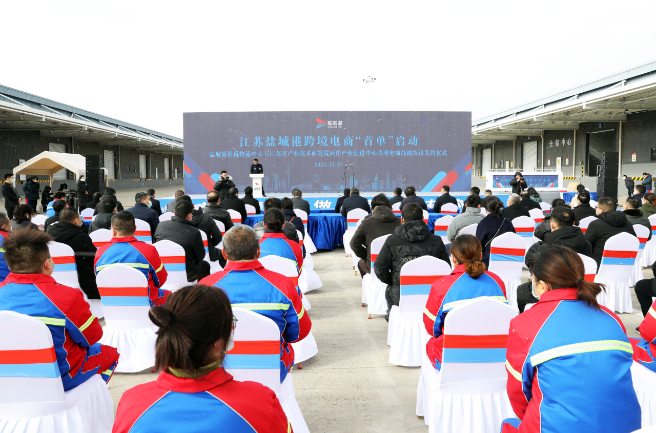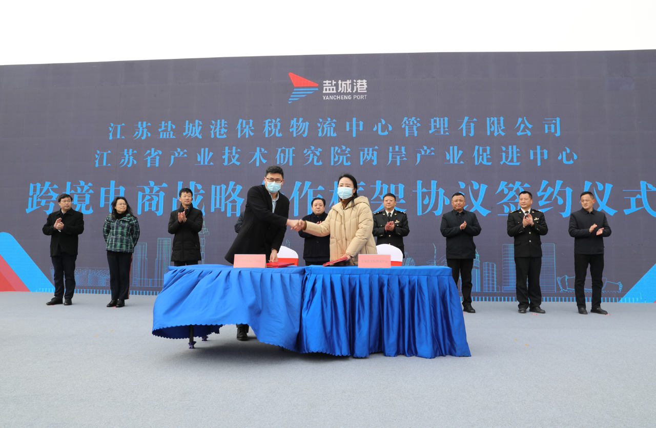 12月25日,江苏盐城港跨境电商“首单”启动暨盐城港保税物流中心与江苏省产业技术研究院两岸产业促进中心跨境电商战略协议签约仪式,在盐城港保税物流中心隆重举行。集团党委书记、董事长、总经理周正雄,盐城海关副关长李健,市商务局副局长乔振,市国资委副主任成友贵,集团党委委员、纪委书记周旭东,集团总经理助理孙永峰以及大丰区相关部门负责同志出席启动仪式并鉴签。集团党委委员、董事、副总经理夏立新主持活动。