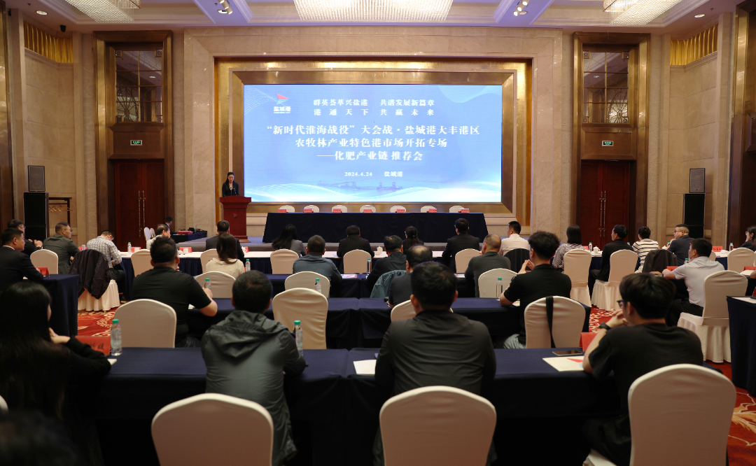 4月24日,集团召开“新时代淮海战役”大会战·盐城港大丰港区农牧林产业特色港市场开拓专场——化肥产业链推荐会,邀请长江流域化肥生产加工企业代表56人来港,围绕协同发展、合作共赢,做大做强化肥产业链进行座谈交流。集团党委书记、董事长周正雄出席活动并致辞。集团副总经理袁欣,集团生产运营部、大丰港区相关负责人等参加。