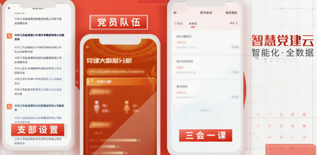 系统设置了党组织管理、党员管理、党组织关系转接、发展党员、党内统计等功能,建设“一网覆盖、同网管理”模式,覆盖全系统内各级党组织及党员的数字化信息库,通过数字地图,实现全天候党组织党员信息维护与查询,党组织关系转接与调整,新发展党员全过程记录与监督,党内大数据查询与统计等等,实现了让数据多跑腿,使党建工作更加得心应手!
