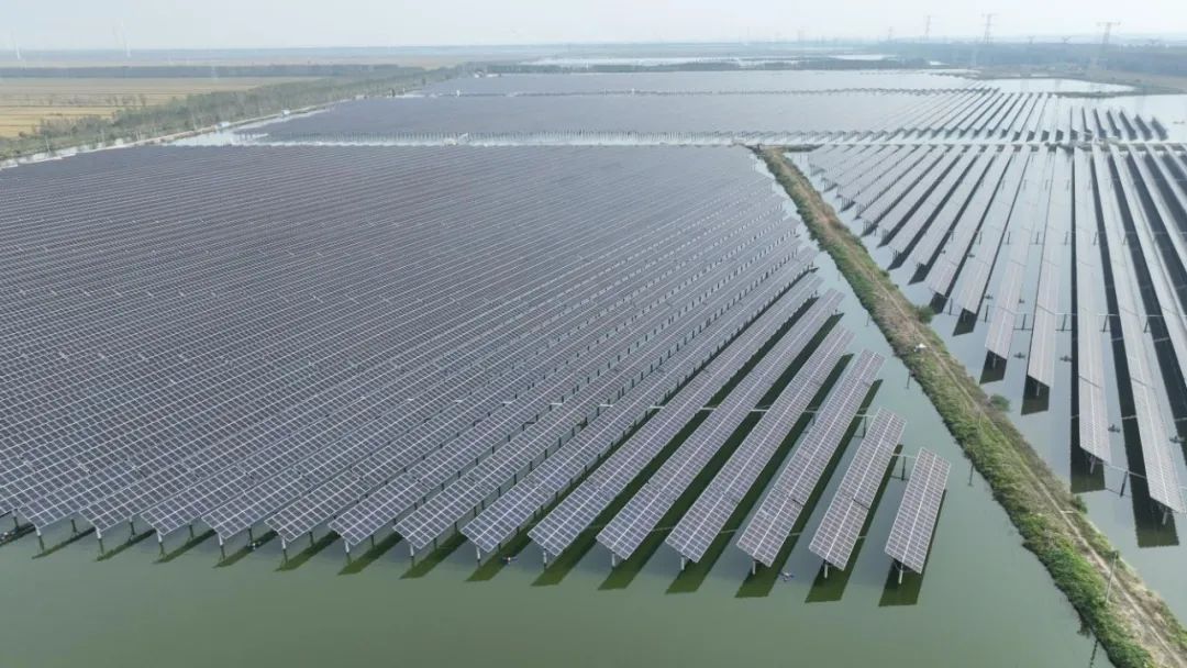 项目总投资15.8亿元,是江苏省能源类重点工程和盐城市重点工程项目,由德信体育 与悦达集团共同投资,采用“一地两用、渔光互补”模式,最大化综合利用阳光、水体等资源,打造了“上可发电、下可养鱼”的集光伏发电、现代高效渔业养殖于一体的示范项目。