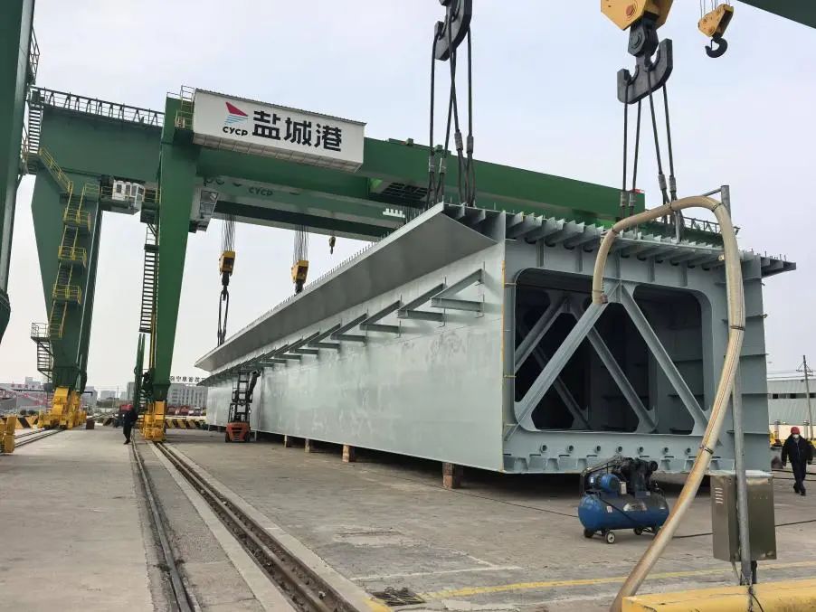 持续调优货源结构,推动大宗原材料向半成品、产成品双向转变。光伏玻璃、水泥吨袋、特大件、电池、铬铁、化肥及钢板等七种新货种相继亮相。其中,阜宁港区成特大件装卸业务,单次吊装最高吨位达500吨,成功刷新内河港口大件装卸记录。