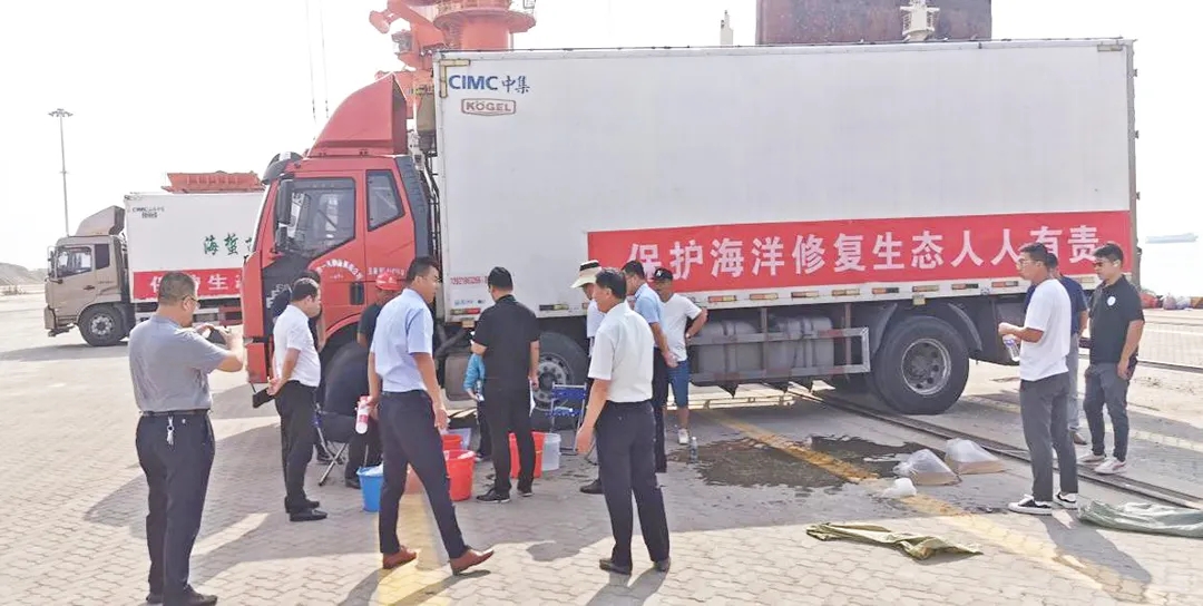 活动过程中,省海洋水产研究所中心实验室、滨海县农业农村局、滨海县公证处工作人员全程参与,现场核查种苗数量、规格、质量,办理现场验收手续,并乘坐货轮前往放流海域共同见证放养种苗,以实现海洋资源恢复,改善海洋生态环境。