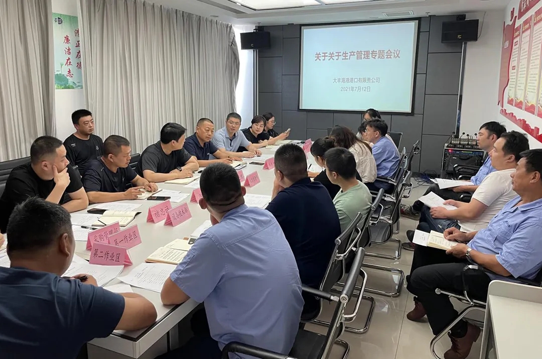 7月12日,大丰港区港口公司召开安全工作、生产管理、党风廉政建设专题会议,公司领导班子、各部门负责人参加会议。