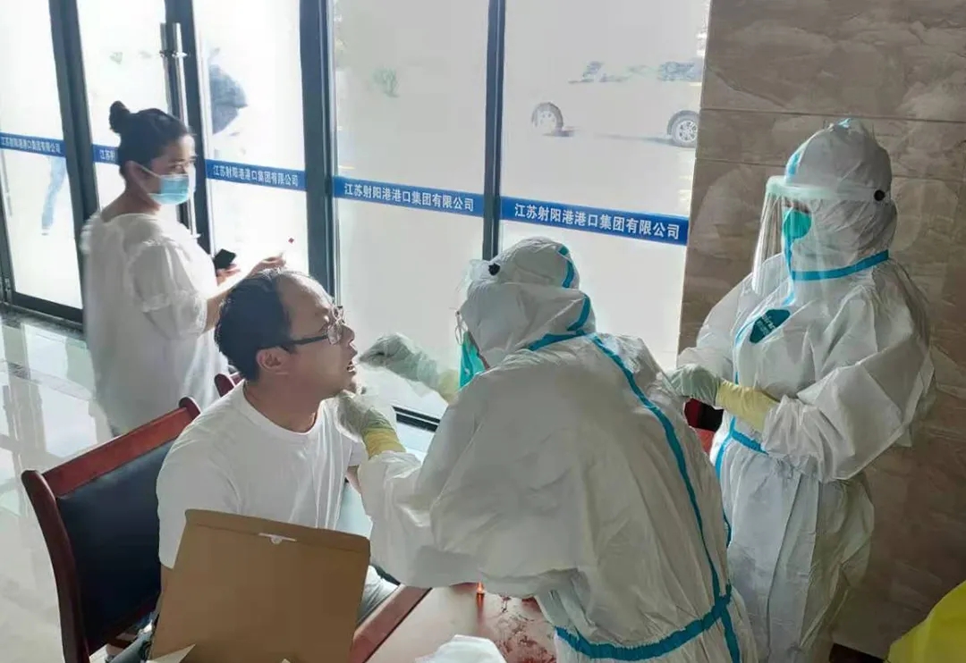 上午8时,射阳县疾病预防控制中心医务人员就已经准备就绪,穿上防护服,戴好护目镜、口罩、手套,在射阳港区联检楼核酸检测点开始为港区员工进行核酸检测。现场人员有序排队,全程佩戴口罩,依次进行检测。截止中午12时,港区近300名员工全部完成核酸检测。