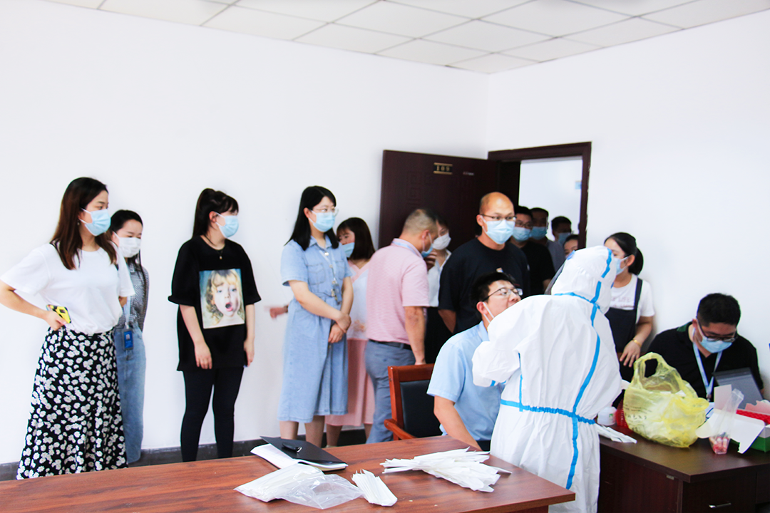 为提高工作效率,避免检测人员聚集,下午2时开始,响水港区采取“分时分段分区域”方式,错峰组织检测取样工作,截止下午4时,共计完成187人核酸检测工作。
