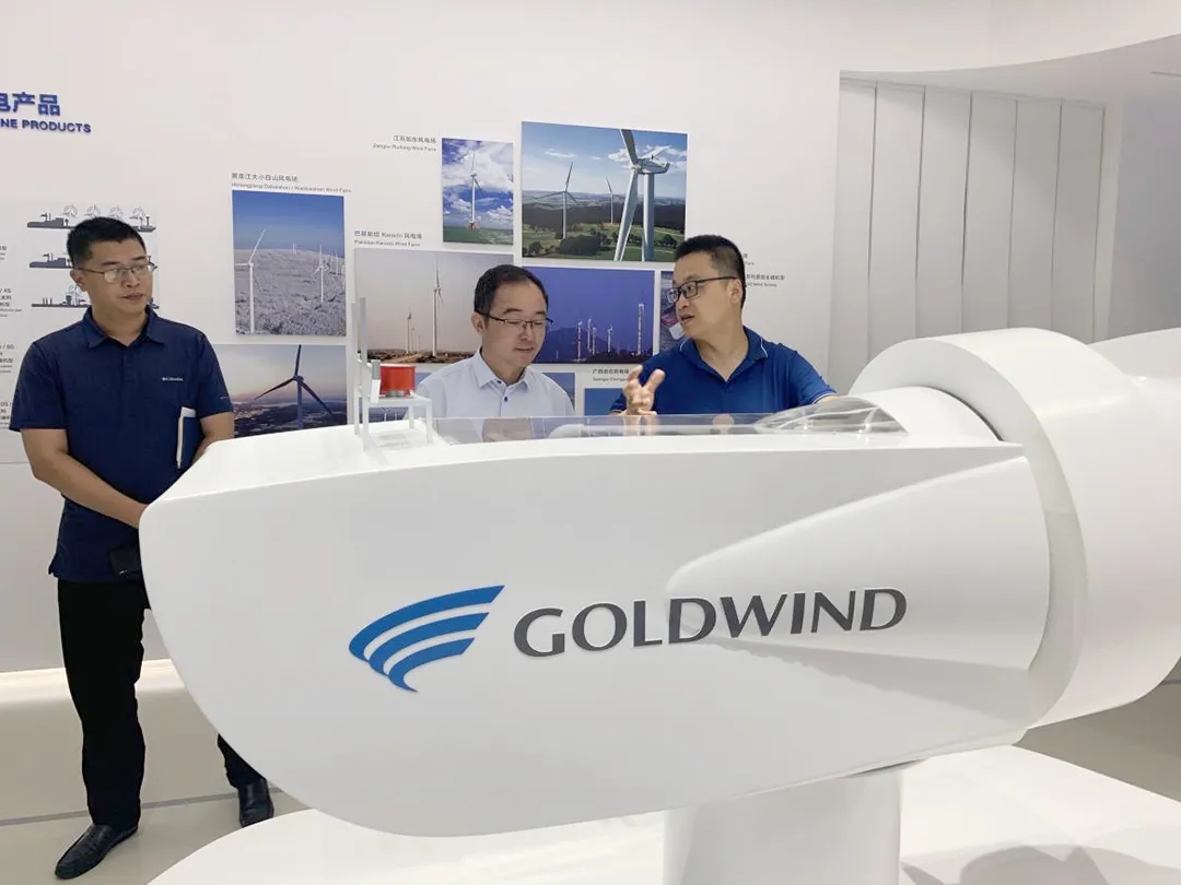 金风科技制造中心总经理潘晋对范云飞一行的到访表示欢迎,并陪同参观了“碳中和”智慧园区、全球监控中心、能源互联网及交直流微网研发测试中心和电控制造厂等项目载体。金风科技制造中心总经理助理李恒介绍了金风科技相关发展情况。