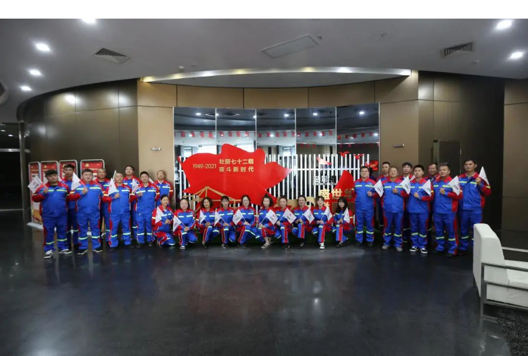 活动中,全体职工们挥舞着党旗,声情并茂、意气风发,用振奋人心的红色旋律为祖国72周年华诞献礼。现场高亢的歌声、优美的旋律、豪迈的气势,无一不充分体现了盐城港人昂扬向上的精神风貌。