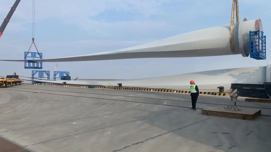 2.10月18日,风电大件攻坚专班成功吊装102M叶片,这次叶片的成功装卸既是射阳港区在10MW风电发电机组及102M叶片吊装领域零的突破,也为未来深远海超大件吊装提供了技术保障。