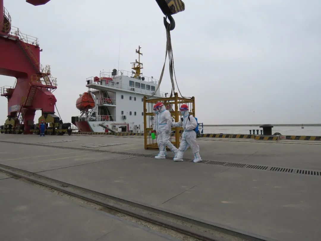 此次演练真实模拟了港区大件泊位在靠泊船舶时,发现发热船员的应急处置过程。演练中,港区疫情防控领导小组迅速启动疫情防控应急预案,立即暂停码头作业,同时第一时间封闭现场,随后使用吊篮将发热病人吊运至码头平面,并由应急车送至县人民医院发热门诊就诊。